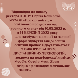 Дистанційне навчання в умовах воєнного стану Екологія10.03.202210.03.2022 Викладачі, Новини, Студенти, УНІВЕРСИТЕТ ← ДО УВАГИ УЧАСНИКІВ ОСВІТНЬОГО ПРОЦЕСУ! «Ми поруч». →