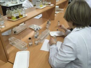 21-23 січня на базі кафедри екології природничого факультету КПНУ імені Івана Огієнка здійснювалась 21-23 січня на базі кафедри екології природничого факультету КПНУ імені Івана Огієнка здійснювалась підготовка учасників обласного (III) етапу олімпіади з хімії. Було проведено цикл лабораторних робіт з хімії та біохімії, хімічної кінетики, аналітичної хімії, зокрема виконано якісні реакції на визначення різних груп катіонів, освоєно метод кислотно-основного титрування. Підготовку здійснили кандидат с.-г. наук, старший викладач Тютюнник Оксана Сергіївна, кандидат фізико-математичних наук, доцент Оптасюк Сергій Васильович, завідувач лабораторії Сосюк Наталія Володимирівна.. Було проведено цикл лабораторних робіт з хімії та біохімії, хімічної кінетики, аналітичної хімії, зокрема виконано якісні реакції на визначення різних груп катіонів, освоєно метод кислотно-основного титрування. Підготовку здійснили кандидат с.-г. наук, старший викладач Тютюнник Оксана Сергіївна, кандидат фізико-математичних наук, доцент Оптасюк Сергій Васильович, завідувач лабораторії Сосюк Наталія Володимирівна.